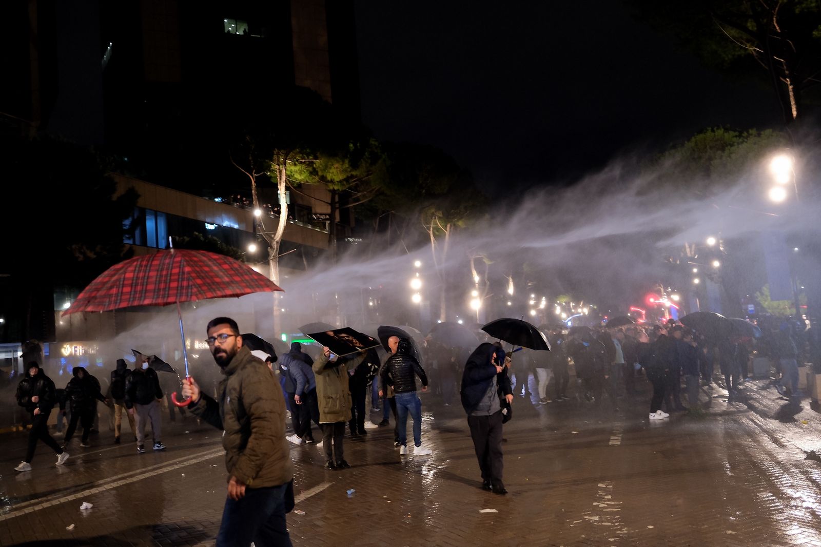Foto Galeri • Berisha mbyll fjalimin, hidhen fishekzjarrë dhe molotovë drejt Kryeministrisë, policia bën thirrje: Ndaloni