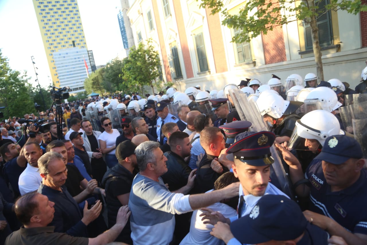 Foto Galeri • Bomba molotov, vezë e domate, përplasje fizike me policinë dhe gaz lotsjellës, çfarë nuk u pa në kamera në protestën tre orëshe të opozitës