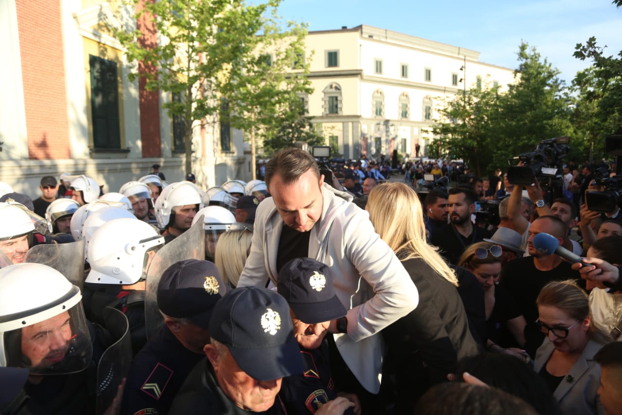 Foto Galeri • Bomba molotov, vezë e domate, përplasje fizike me policinë dhe gaz lotsjellës, çfarë nuk u pa në kamera në protestën tre orëshe të opozitës