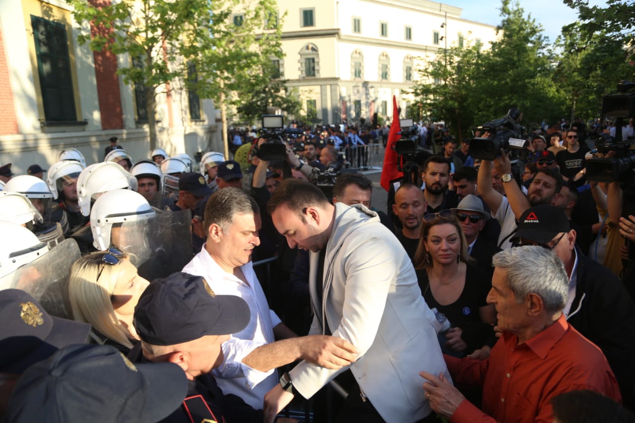 Foto Galeri • Bomba molotov, vezë e domate, përplasje fizike me policinë dhe gaz lotsjellës, çfarë nuk u pa në kamera në protestën tre orëshe të opozitës
