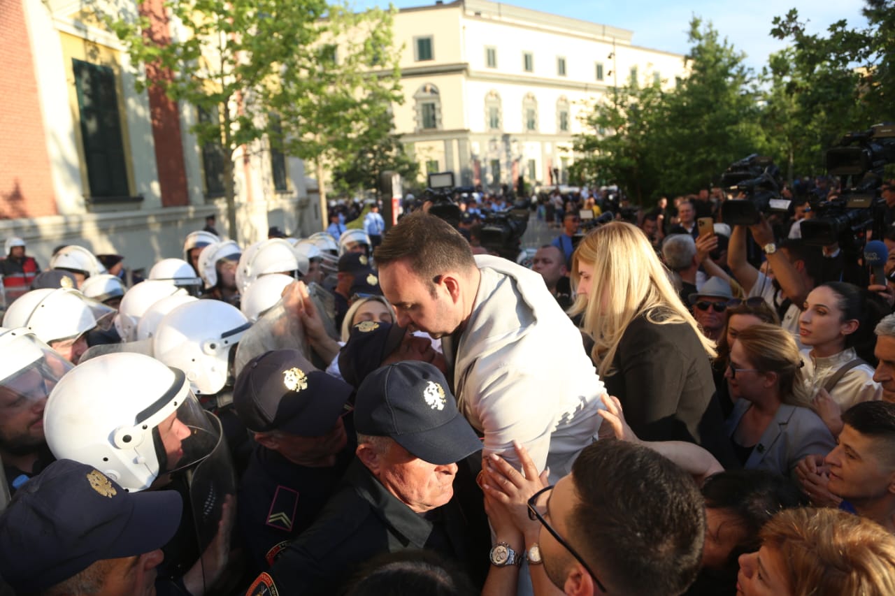 Foto Galeri • Bomba molotov, vezë e domate, përplasje fizike me policinë dhe gaz lotsjellës, çfarë nuk u pa në kamera në protestën tre orëshe të opozitës