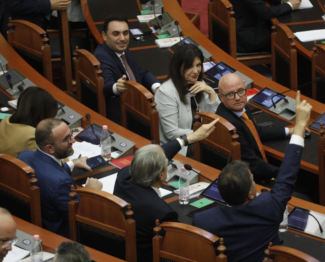 Foto Galeri • Çfarë po i thotë Berisha Eno Bozdos? Ministrja “përgjon” Toni Gogun. Fotot pikante nga seanca