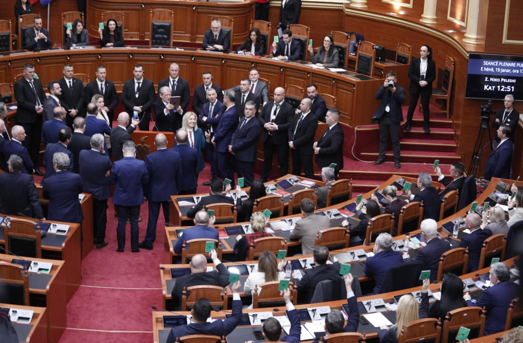 Foto Galeri • FOTOT/ Berisha bën kameramanin me iPad në dorë në Kuvend, deputetët e PD bllokojnë foltoren, ç’ndodhi në 20 minuta seancë ‘blic’