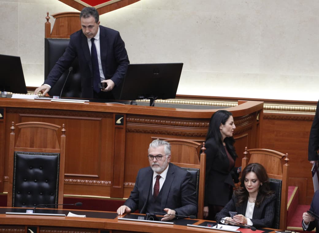 Foto Galeri • FOTOT/ Berisha bën kameramanin me iPad në dorë në Kuvend, deputetët e PD bllokojnë foltoren, ç’ndodhi në 20 minuta seancë ‘blic’