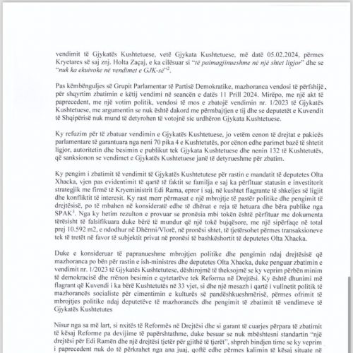 “Dhunimi më flagrant që Kuvendi i ka bërë Kushtetutës në 33 vjet”, grupi i PD letër BE-së për mandatin e Xhaçkës: Mos ka kaloni këtë situatë në heshtje