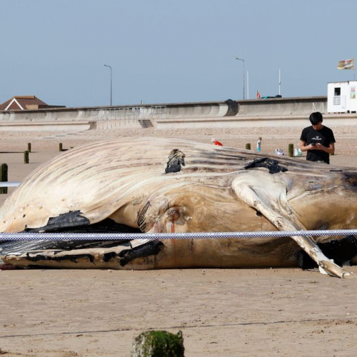 Turistët paralajmërohen të qëndrojnë larg kufomës 12m të balenës në plazhin britanik (fotot)