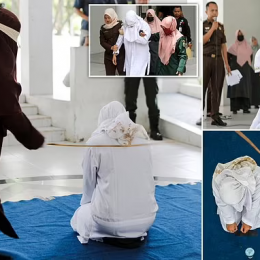 21 goditje thupre në publik dënohet çifti i pamartuar që puthej në Indonezi, sipas ligjit Sharia (fotot)