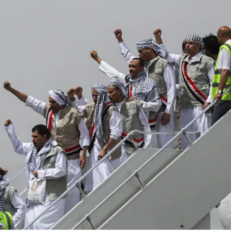 Robër rebelë Huthi vijnë nga Arabia Saudite në Jemen, për këmbimin e të burgosurve të konfliktit (fotot)