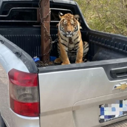 Karteli i El Chapo braktis tigrin e lidhur në kamionçinë pas ndjekjes nga autoritetet (fotot)