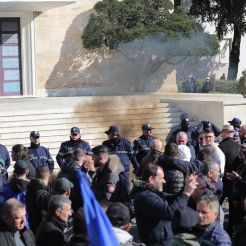 Fotot/ Mbulohet nga tymi Kryeministria, protestuesit hedhin kapsolla