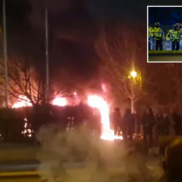 Britanikët djegin furgonin e policisë gjatë protestave ndaj hoteleve të emigrantëve në Liverpool (fotot)