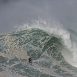 Surfisti profesionist vdes duke lundruar mbi valët portugeze të oqeanit në Nazare (fotot)