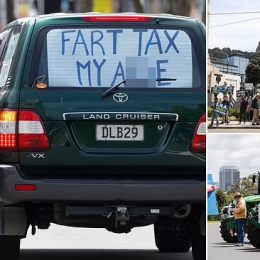 Fermerët dalin në rrugë me traktorë kur kryeministrja kërkon të taksojë gromësimat dhe ‘lëshimet e ajrit’ të kafshëve në Zelandën e Re (fotot)