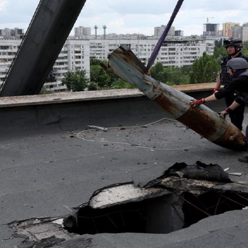 Foto/ Bomba e pashpërthyer zhvendoset nga ndërtesa në Kharkiv, rusët nuk e plotësuan misionin