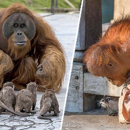 Imazhet e mahnitshme tregojnë urangutangun që luan dhe mëson familjen e lundërzave në kopsht (fotot)