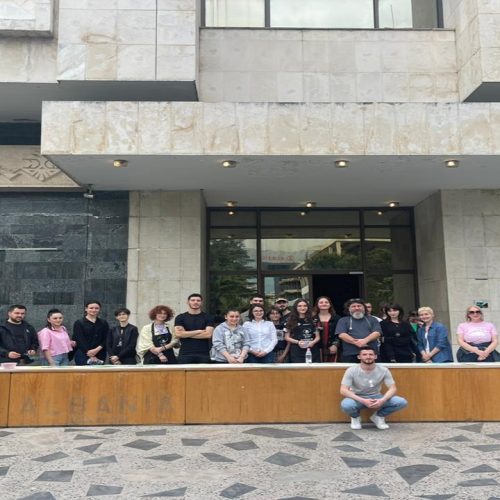 Festivali i katërt ndërkombëtar/ Tirana në dy kohë portretizohet nga mjeshtrat e akuarelit në një pikturë gjigande