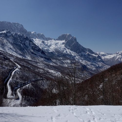 Turistët shijojnë borën në Bogë