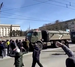 Momentet dramatike kur ukrainasit sprapsin kamionët rusë ‘Z’ duke protestuar: Shkoni në shtëpi! (Video)