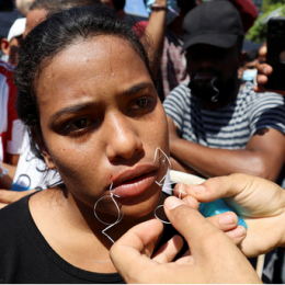 Protesta shokuese/ Emigrantët që tentojnë kufirin me SHBA qepin gojët të mbyllura në Meksikë (fotot)