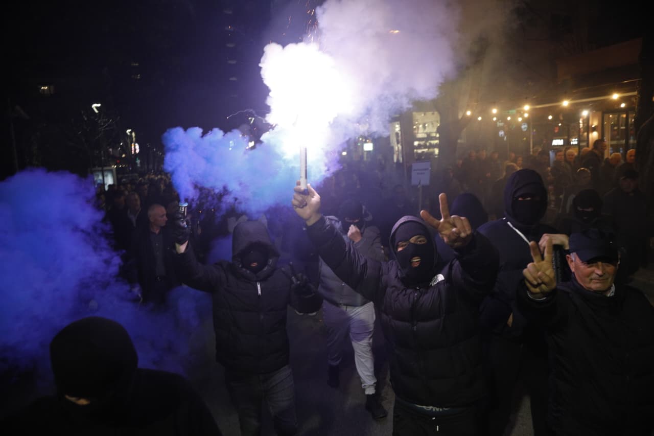 Foto Galeri • PD 3 orë protestë me molotovë, fishekzjarre dhe flamurin gjerman. Berisha lëndohet me spray në sy. Katër efektivë të policisë të plagosur