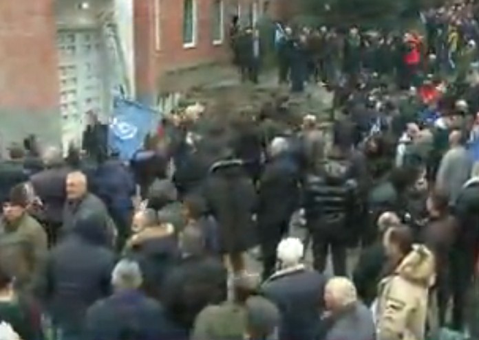 Foto Galeri • Protestuesit marrin shkallët, do ngjiten në katin e dytë të godinës së PD-së