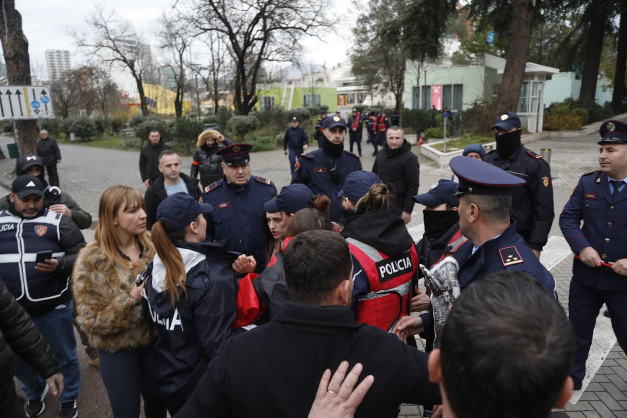 Foto Galeri • “Turp, turp”, sërish përplasje mes protestuesve dhe policisë para Kryeministrisë, një qytetar rrëzohet në tokë