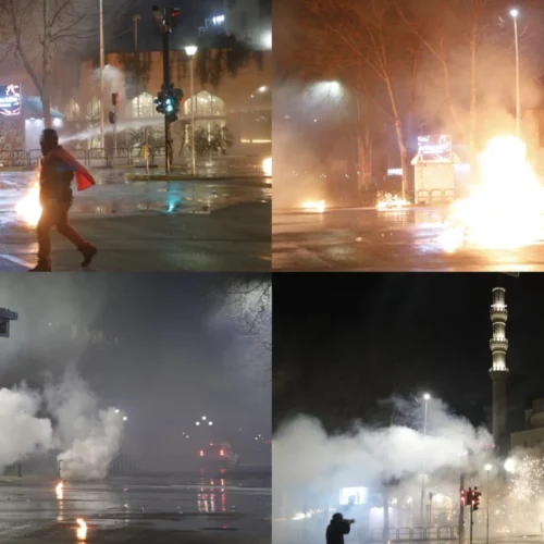PD 3 orë protestë me molotovë, fishekzjarre dhe flamurin gjerman. Berisha lëndohet me spray në sy. Katër efektivë të policisë të plagosur