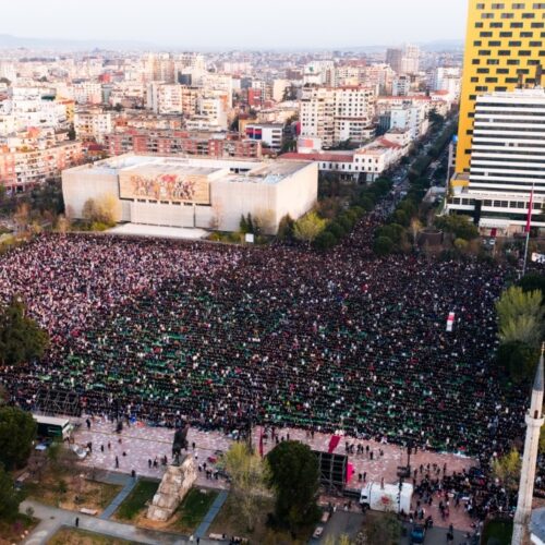 Foto/ Besimtarët myslimanë festojnë Fitër Bajramin! 120 mijë shqiptarë falin namazin në sheshin “Skënderbej”, pasqyrohet edhe në mediat ndërkombëtare
