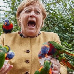 2 ditë para zgjedhjeve Angela Merkel viziton një park shpendësh, papagajtë ‘e sulmojnë’/ Nuk duhet t’i humbisni fotot e kancelares