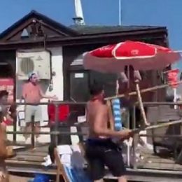 Çadra, karrige e shishe në ajër, përleshje masive mes të rinjve në bregdet (Pamjet)