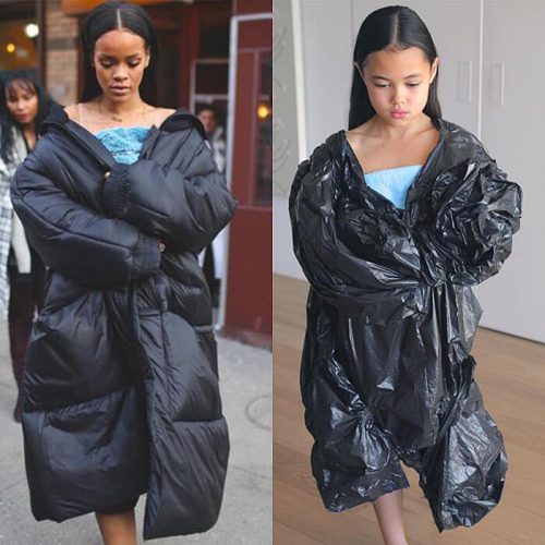 Vogëlushja tallet me veshjet e të famshmeve (Foto)