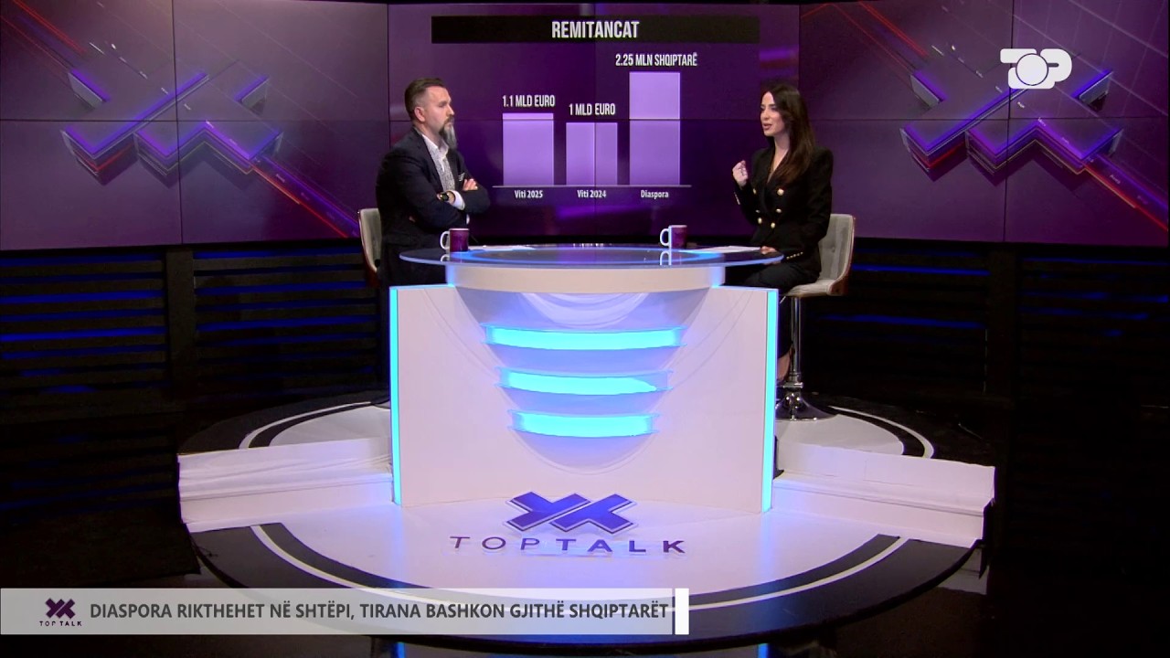 Eksperti për ekonominë Kolindo Vjerdha foli në Top Talk për largimet e të rinjve, teksa renditi edhe faktorët kryesorë. Ai analizoi gjithashtu edhe arsyet përse të rinjtë vendosin të largohen jashtë Programi "Top Talk" është emision i përditshëm që trajton tema aktuale në fushën e ekonomisë dhe biznesit. Me të ftuar të specializuar, analiza të thelluara dhe debate dinamike, programi sjell informacione të rëndësishme dhe opinione mbi zhvillimet më të fundit që ndikojnë në xhepat tanë, tregje dhe ekonomi. Nga e hëna në të premte, ora 15:45 Autor/Moderator: Angelo Haruni