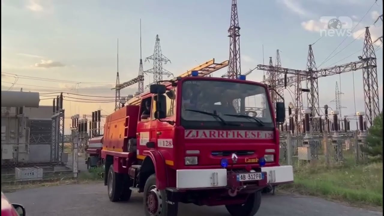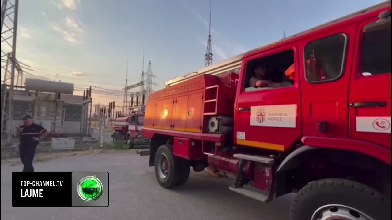 Top Channel/ Zjarr në një nënstacion elektrik në Korçë, në vendngjarje dhe zjarrfikëset e policia