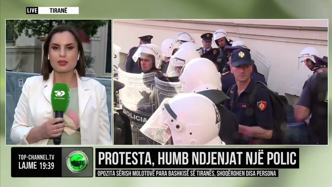 Top Channel/ Protesta, humb ndjenjat një polic/ Opozita sërish molotovë para bashkisë së Tiranës