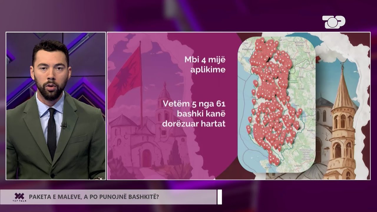 Drejtori ekzekutiv i Institutit për Bashkitë e Shqipërisë, Agron Haxhimali, analizoi në Top Talk Economy disa nga problemet e bashkive vendore, përfshirë atë të paketës së maleve. Teksa iu referua mbledhjes që kryeministri Edi Rama bëri me kryebashkiakët, për vonesat e finalizimit të hartave për paketën e maleve, Haxhimali tregoi se ku çalon puna për këtë nismë ligjore. Ndër të tjera u diskutuan edhe fondet e bashkive, çfarë ndryshimesh pritet të ndodhin. Programi "Top Talk" është emision i përditshëm që trajton tema aktuale në fushën e ekonomisë dhe biznesit. Me të ftuar të specializuar, analiza të thelluara dhe debate dinamike, programi sjell informacione të rëndësishme dhe opinione mbi zhvillimet më të fundit që ndikojnë në xhepat tanë, tregje dhe ekonomi. Nga e hëna në të premte, ora 15:45 Autor/Moderator: Angelo Haruni