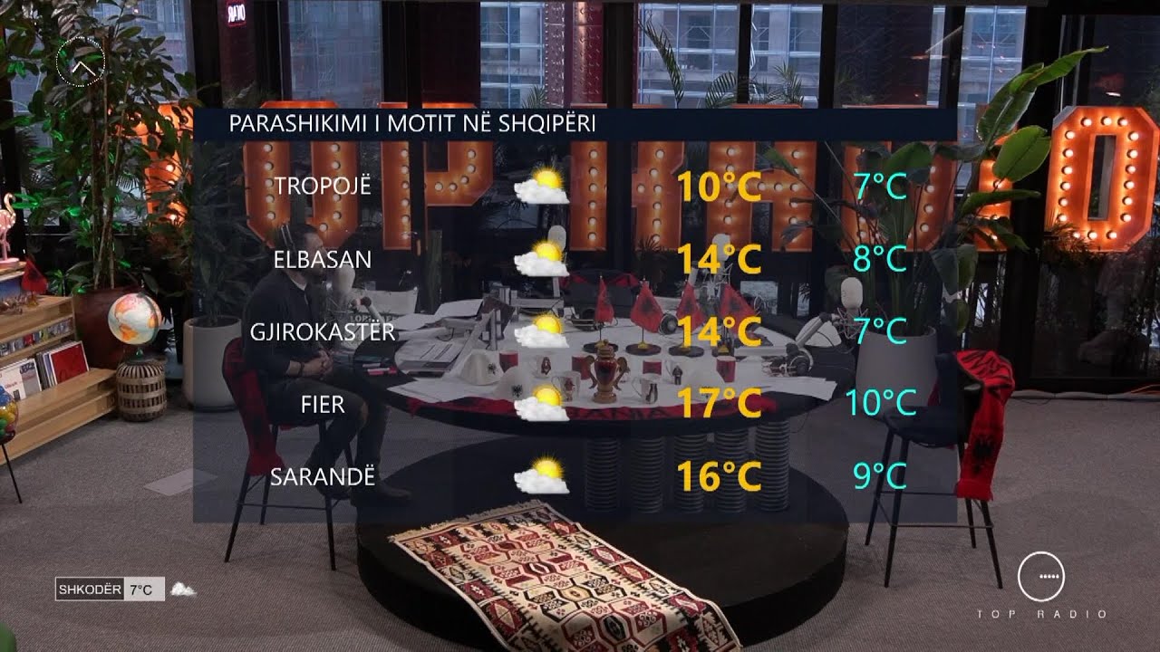 Vendi ynë sot do të mbizotërohet nga alternime vranësirash dhe kthjellimesh të cilat do të sjellin mot të qëndrueshëm. Sipas Meteoalb, sot temperaturat do të pësojnë një rënie të lehtë ku variojnë: në zonat malore, nga 00°C në 11°C, në zonat e ulëta nga 06°C në 17°C dhe në zonat bregdetare nga 08°C në 18°C. Era do të fryjë në drejtim Jugor ndërsa forca e valëzimit në det do të jetë 3 ballë.