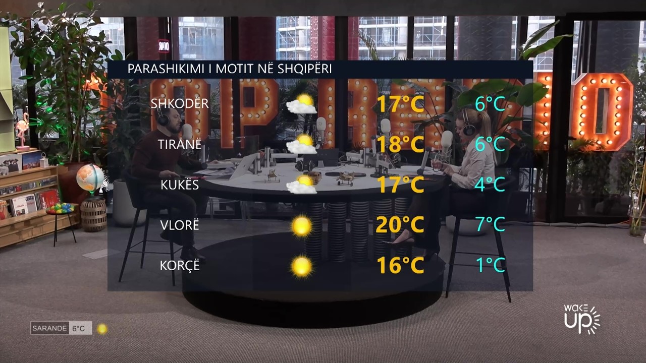 Çdo mëngjes zgjohuni me “Wake Up”, programi i njëkohshëm radio-televiziv i “Top Channel” e “Top Albania Radio”, në thelb ka përcjelljen e informacionit më të nevojshëm për mëngjesin. Në “Wake Up” gjeni leximin e gazetave, analiza të ndryshme, informacione utilitare, këmbimin valuator, parashikimin e motit, biseda me të ftuarit në studio për tema të aktualitetit, nga jeta e përditshme urbane e deri tek arti dhe spektakli si dhe personazhe interesantë. Zgjimi në “Wake Up” është ritmik dhe me buzëqeshje. Gjatë tri orëve të transmetimit, na shoqëron edhe muzika më e mirë, e huaj dhe shqiptare. Prezantues: Ori Nebijaj & Isli Islami Autore: Aida Tuci Gazetar: Ermal Kelliçi (redaktor), Edlira Sulejmani, Malvina Gorreja, Vilma Kërçiku