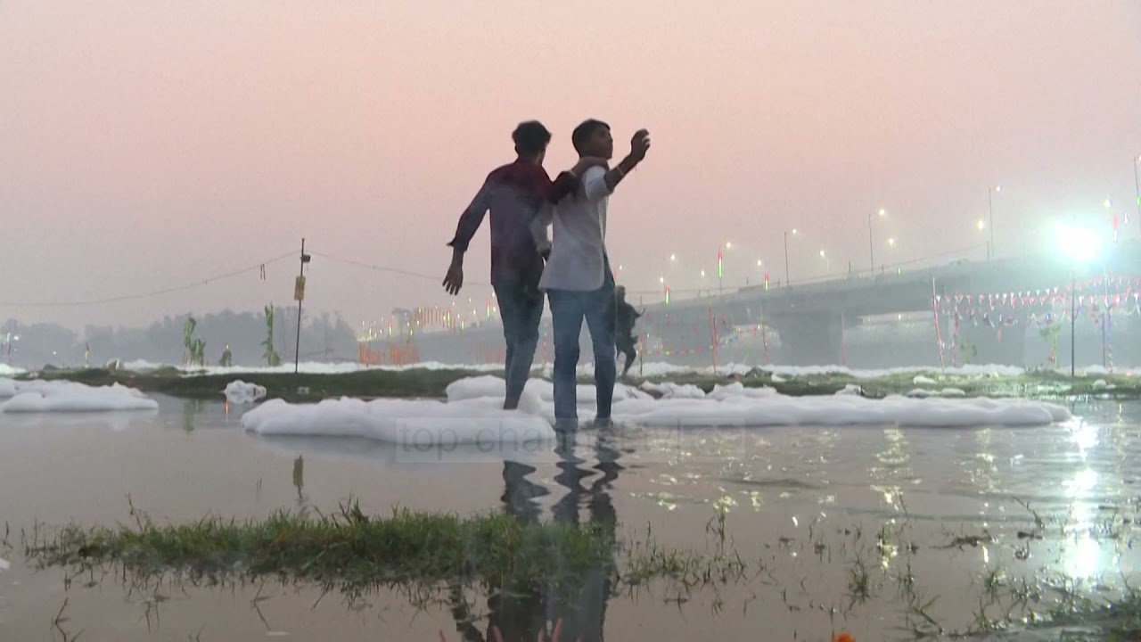 Top Channel/ Shkumë toksike në ujë, njerëzit hyjnë të lahen: Është lumë i shenjtë!