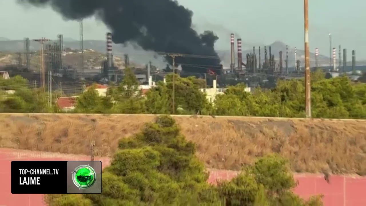 Top Channel/ Zjarr në rafinerinë e naftës në Greqi, pas shpërthimit të fortë tymi i zi mbulon zonën