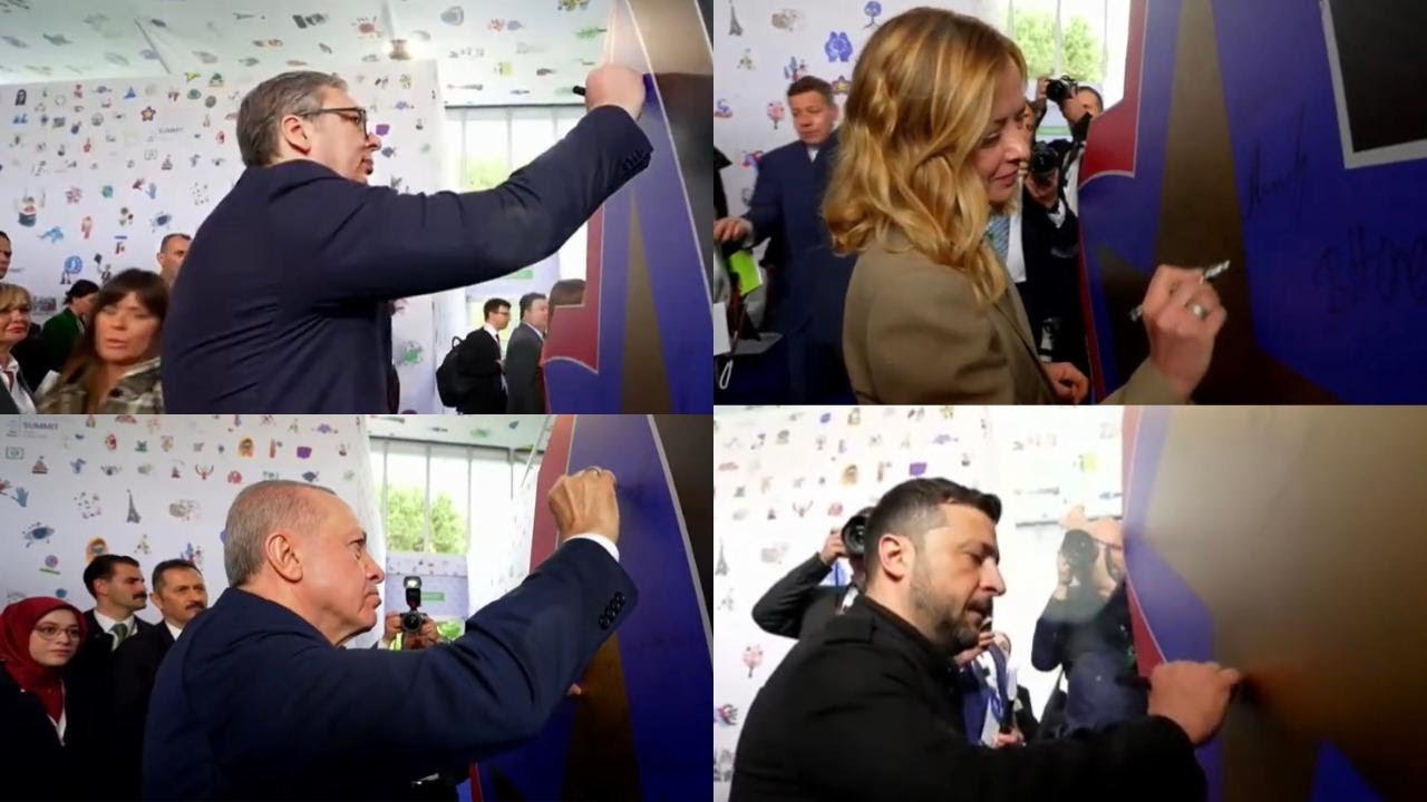 VIDEO/ Erdogan, Zelensky, Meloni e Vuçiç firmosin YLLIN e RAMËS në sheshin “Skënderbej” | Breaking
