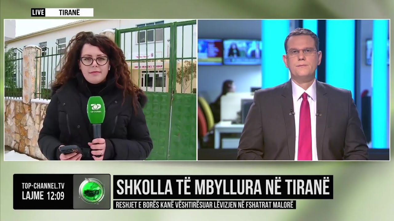 Top Channel/ Shkolla të mbyllura në Tiranë,reshjet e borës vështirësojnë lëvizjen në fshatrat malorë