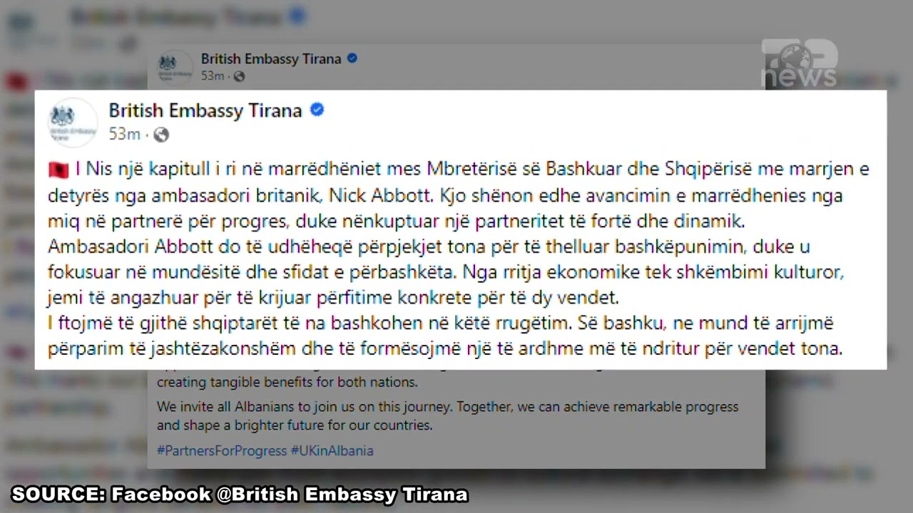 Top News/Merr detyrën ambasadori i ri britanik / Abott në Tiranë: Kapitull i ri në marrëdhëniet tona