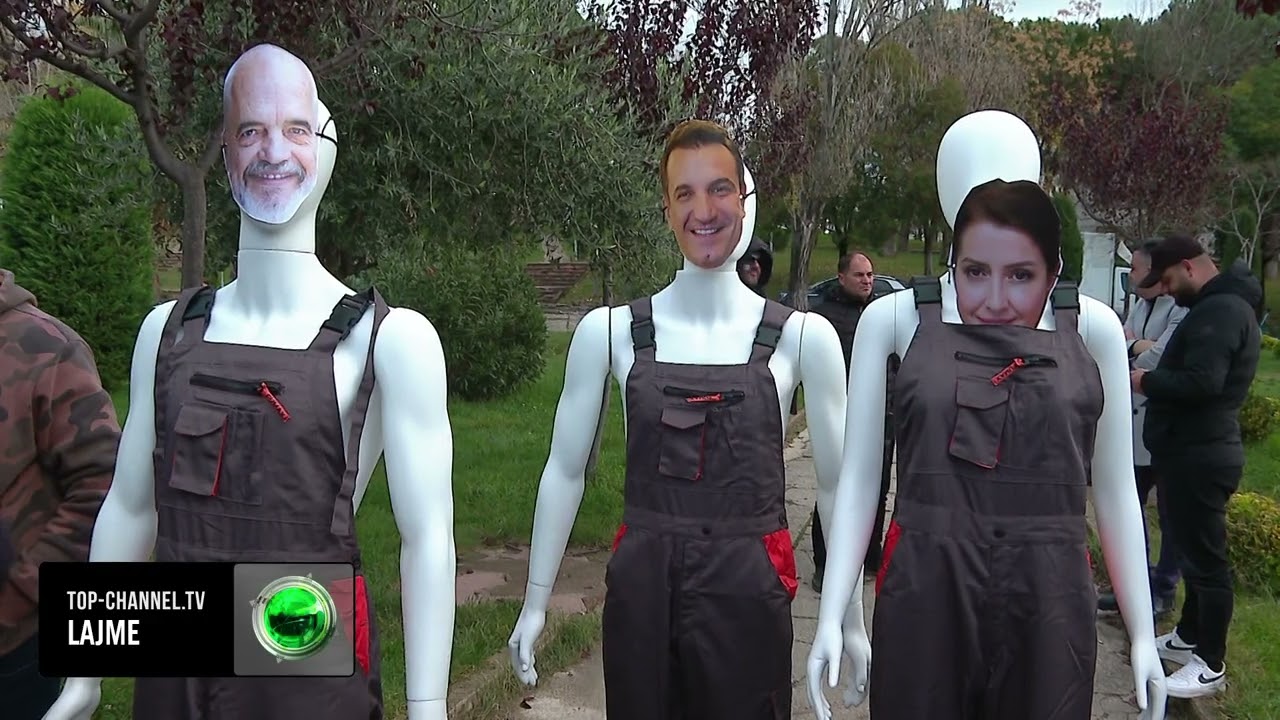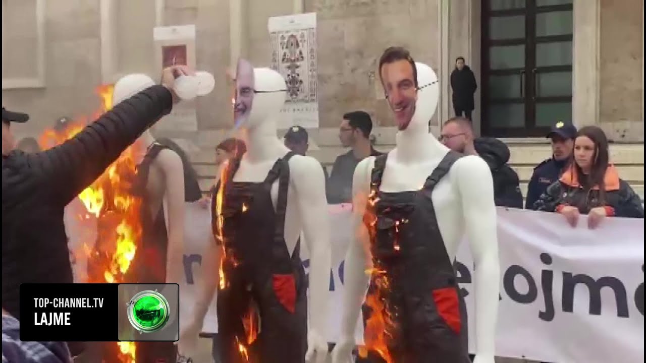 Top Channel/ Marshimi i të rinjve të FRPD, u vihet flaka manekinëve para Kryeministrisë