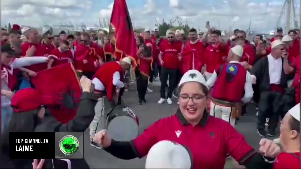Top Channel/ Shqiptarët ‘pushtojnë’ Hamburgun! Tifozët nisin festën me plisa dhe flamuj në duar