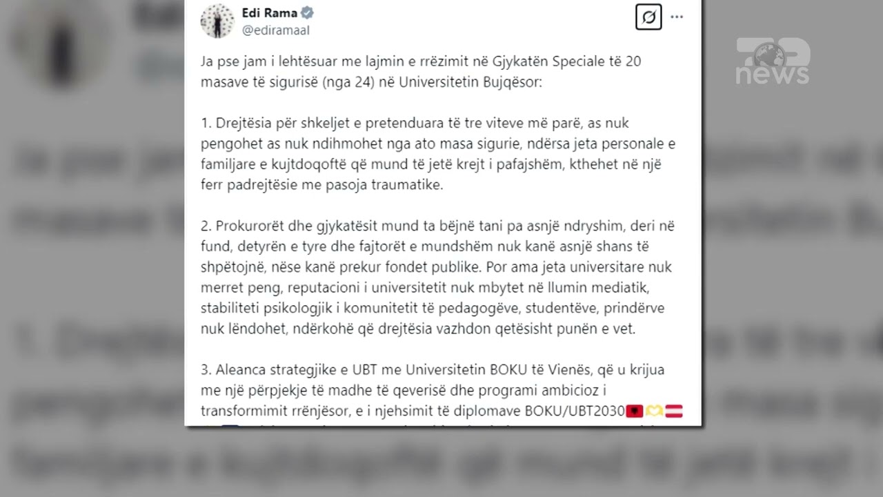 Top News- Zbutja e masave të sigurisë te UBT. Rama-I lehtësuar! Nuk kërcënohet aleanca me austriakët