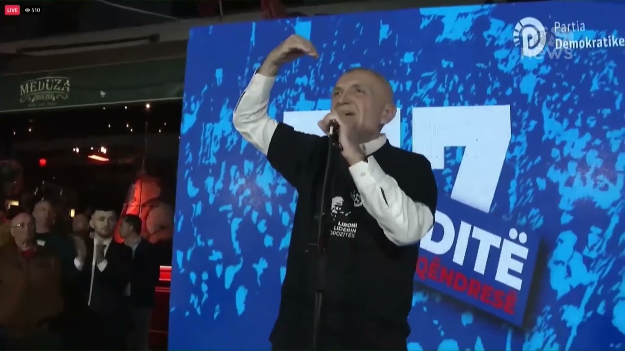 Top Channel/ Meta poshtë ballkonit të Berishës, nis fjalimin e tij me këngë