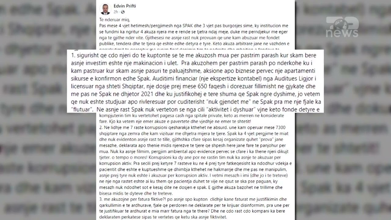 Top News/ Akuzohet për 4 vepra penale nga SPAK/Edvin Prifti-Qëllimi, dënimi im dhe mbajtja e fondeve