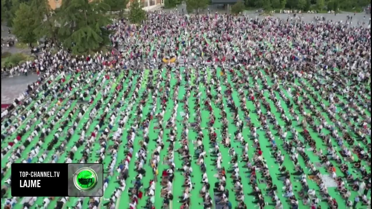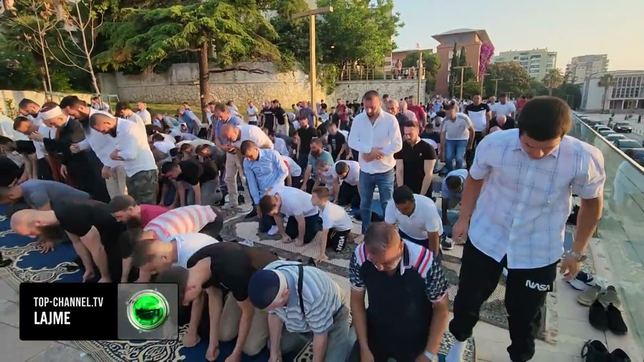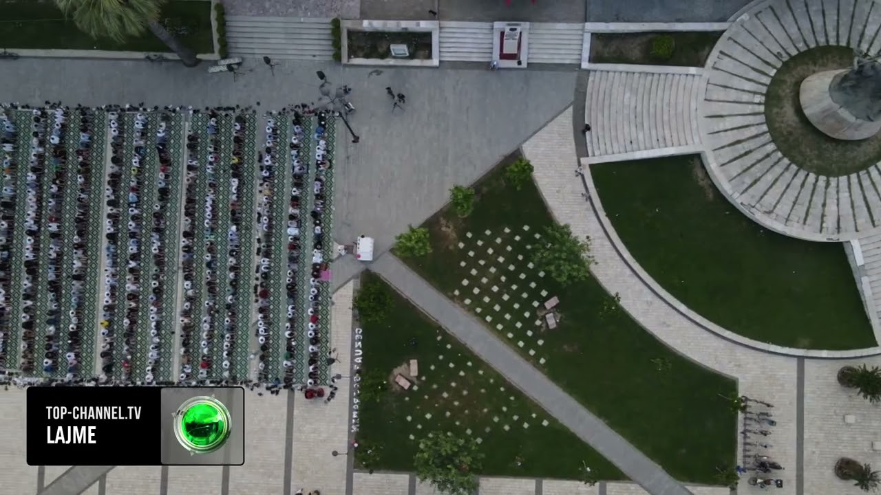 Top Channel/ Sot Kurban Bajrami, besimtarët falin namazin në sheshin Skëndërbej