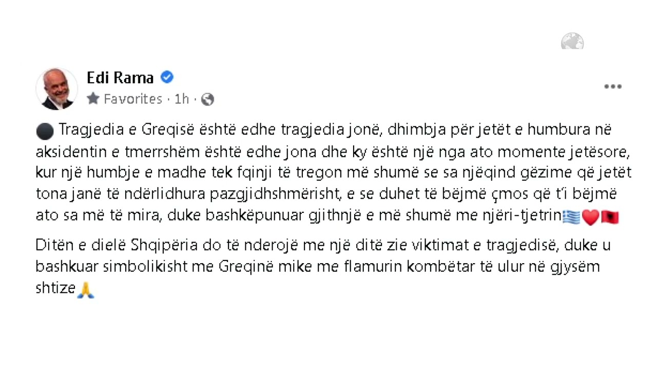 Top News-Shqipëria solidarizohet me Greqinë/E diela shpallet ditë zie, flamuri ulet në gjysmë shtizë