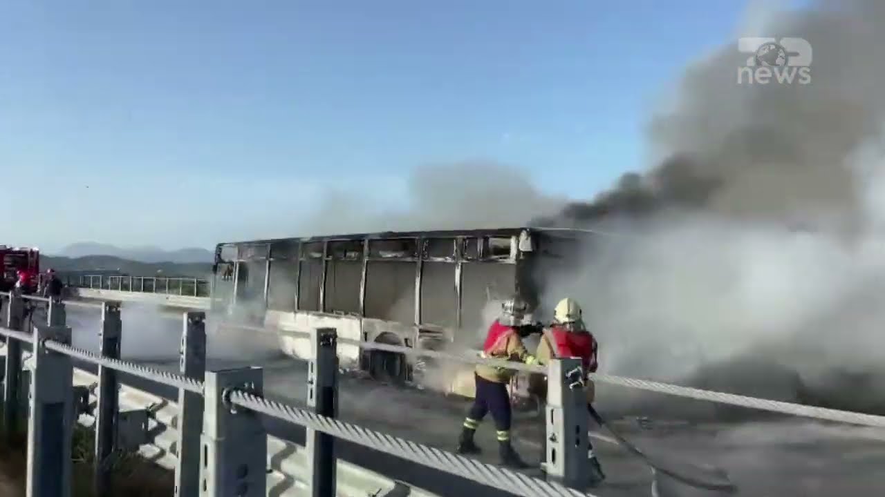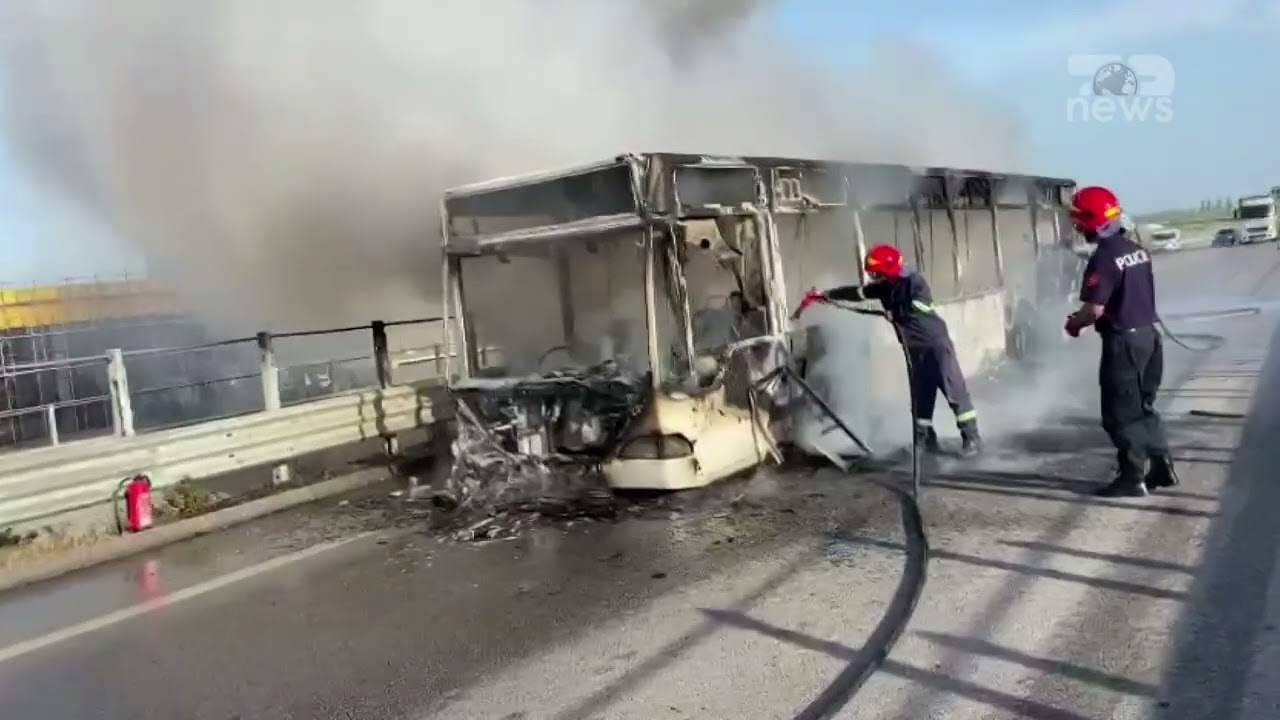 Top News- Shpërthen në flakë autobusi në Vlorë, digjet plotësisht
